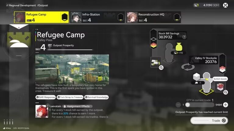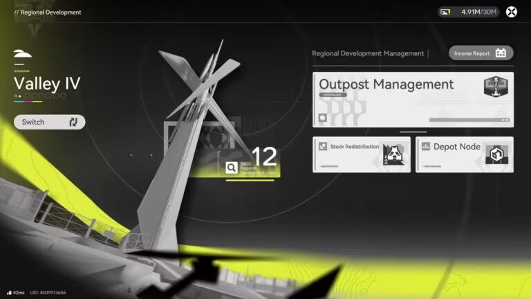 Industrial operations are structured within Main Bases and Sub Bases located in major regions. In the current version of the game, Valley IV contains one Main Base supported by three Sub Bases, while Wuling features one Main Base and one Sub Base.
