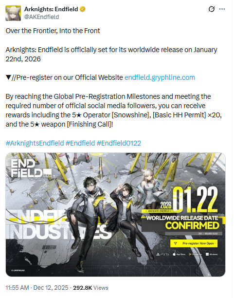 GRYPHLINE’s Arknights: Endfield is going global on January 22nd, 2026, for Mobile, PC, and Console