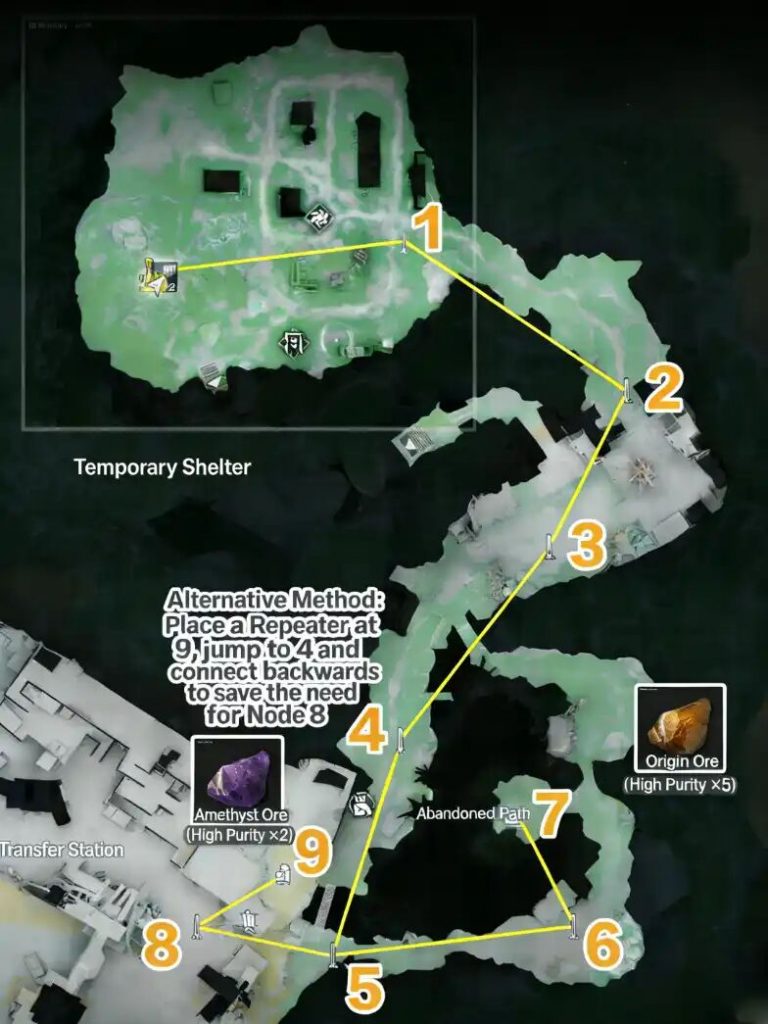 - Equipment Check: Double-check your inventory to clearly distinguish between Repeaters and Pylons. Misplacing a Pylon where a Repeater is needed (or vice versa) at a critical junction will prevent your mining drills and other facilities from receiving power, halting your operations.