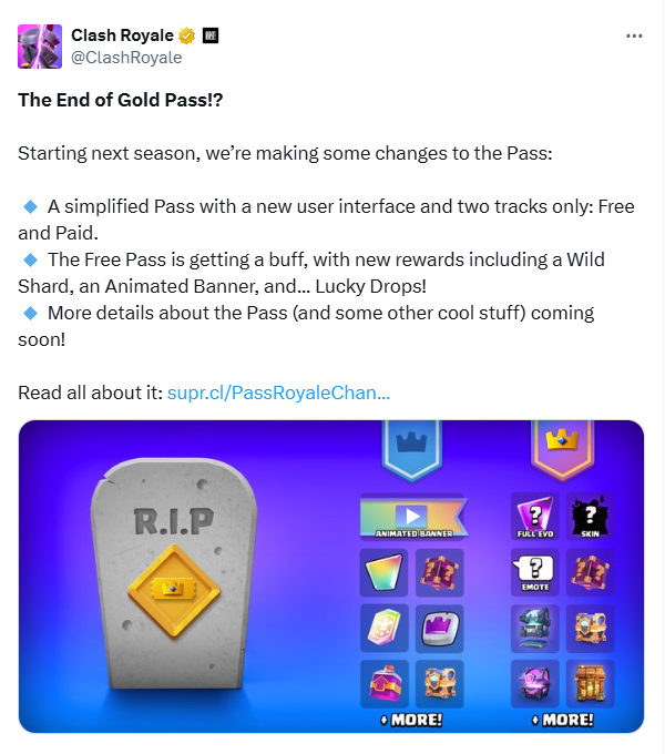 Clash Royale October 2024 Changes: Permanent removal of Gold Pass Royale