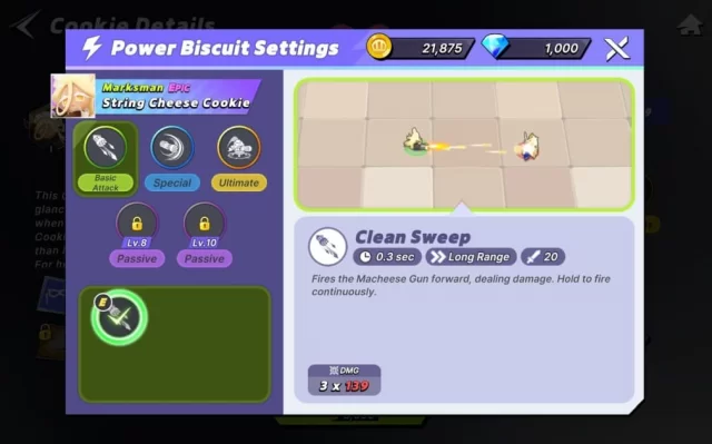 At first glance, String Cheese Cookie’s stats might seem unimpressive—but once you start playing her, you’ll notice she deals an insane amount of damage. Her kit is built to keep enemies at a distance, a playstyle further reinforced by her powerful turrets.