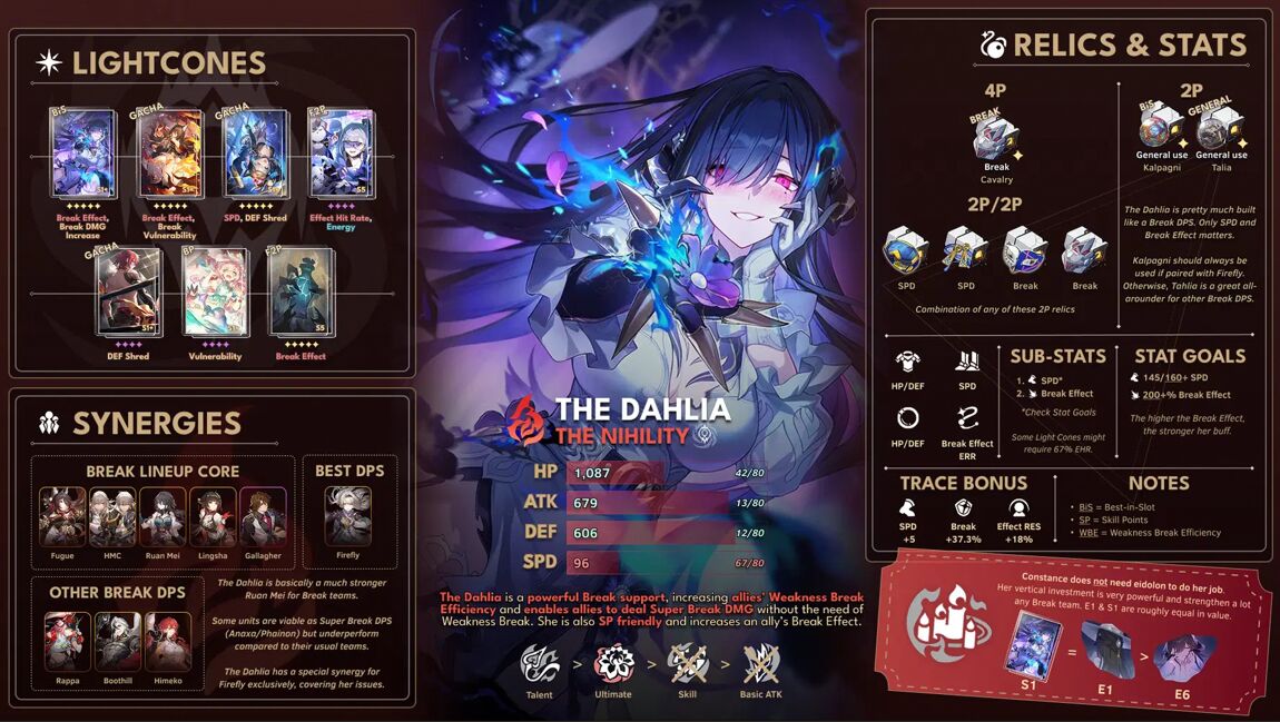 The Dahlia presents itself as a good support for any team that benefits from Super Break damage.