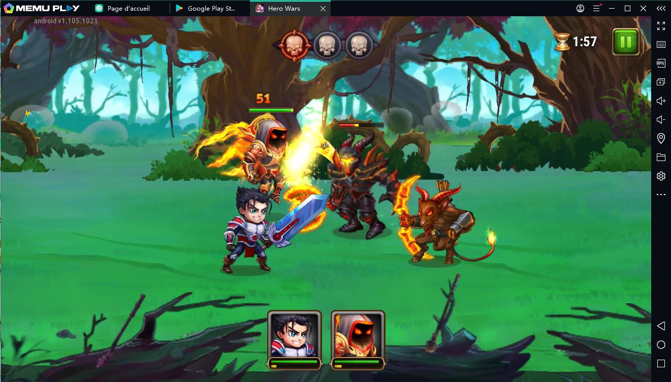 - Combattez des ennemis avec des dizaines de héros – débloquez des compétences et renforcez votre héros