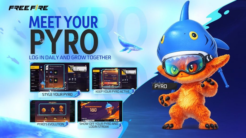 The patch features a revamped cumulative login system starring Free Fire’s mascot, Pyro. Daily logins not only progress your login streak but also awaken Pyro’s power, gradually unlocking new looks and exclusive accessories for the fiery companion. Maintaining consistent login statistics will significantly increase your chances of receiving high-level, exclusive rewards.