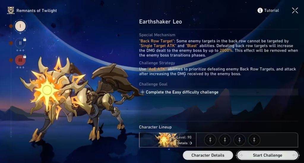 The First stage of Remnants of Twilight is called Earthshaker Leo and focuses on the brand new battle mechanic: Back Row Target.
