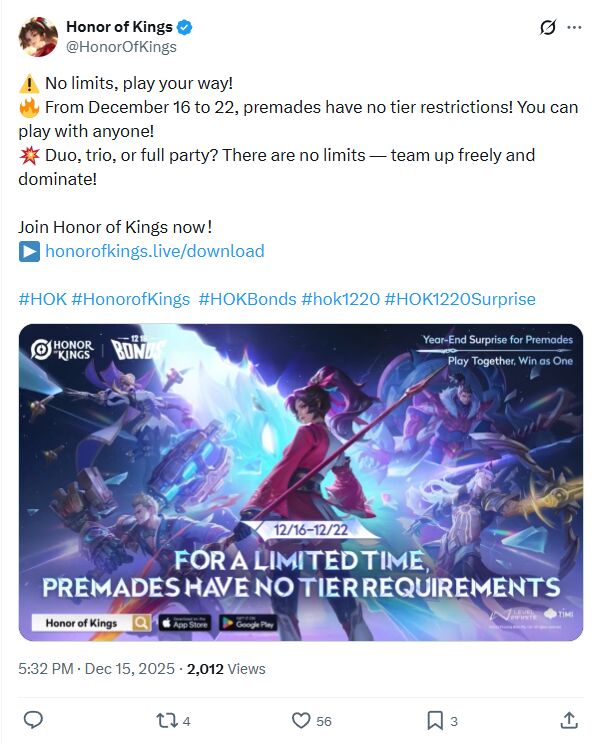 As part of Honor of Kings Year-End surprises, the game will be experiencing a never-before-seen feature in the new Ranked Season. Starting December 16th, you’ll be able to play in Ranked matches without any Ranked Restrictions for a limited time. This new feature excites some players while proving worrisome for others, raising real questions about how ranked matches will play out this season.