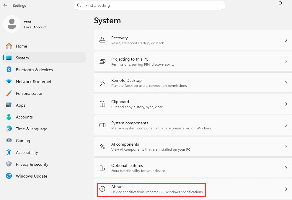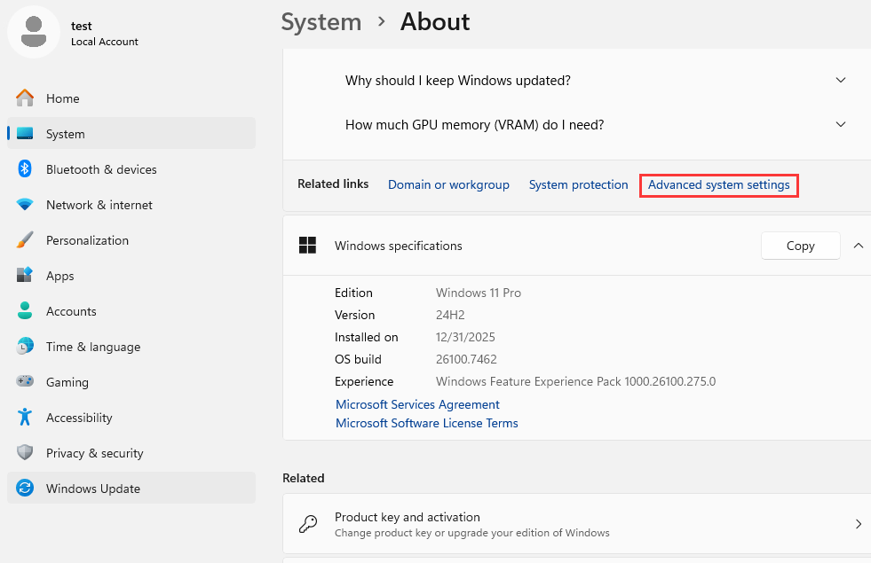 2. In the System settings window, select Advanced system settings (refer to the image).