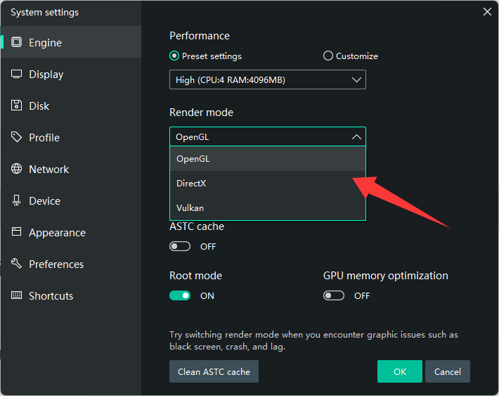 1. Switch Graphics Rendering Mode