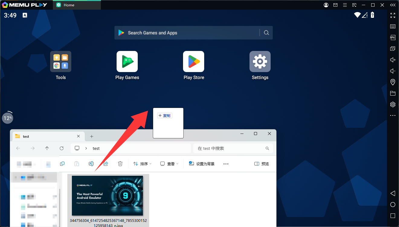 MEmu allows you to easily transfer files such as images, videos, APKs, and documents between your PC and the Android system inside the emulator.
