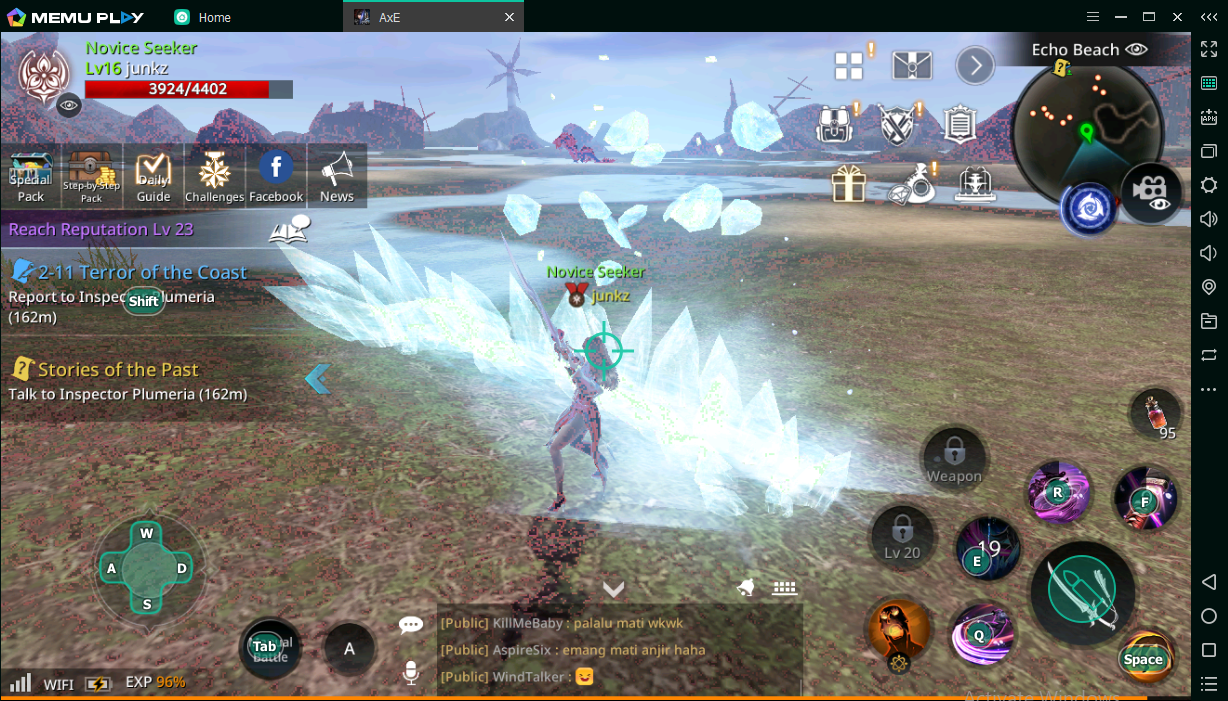 Bagi kamu yang ingin memainkan AxE dengan lebih baik dan leluasa, atau kamu yang belum punya smartphone dengan spek memadai, cobalah bermain AxE di PC menggunakan MEmu Android Emulator. Karena kamu bisa bermain di layar yang lebih lebar, dan bisa leluasa melihat, karena tidak terhalangi jari. Kamu juga bisa bermain lebih bebas, karena menggunakan keyboard dan mouse, yang dibantu dengan fitur key mapping, yang bisa kamu atur sesuai keinginan. Waktu bermain lebih leluasa, karena tidak terbatasi oleh baterai, dan daya tahan smartphone. Selain itu, kamu juga bisa memainkan dua akun sekaligus atau dua game android yang berbeda di waktu yang sama.