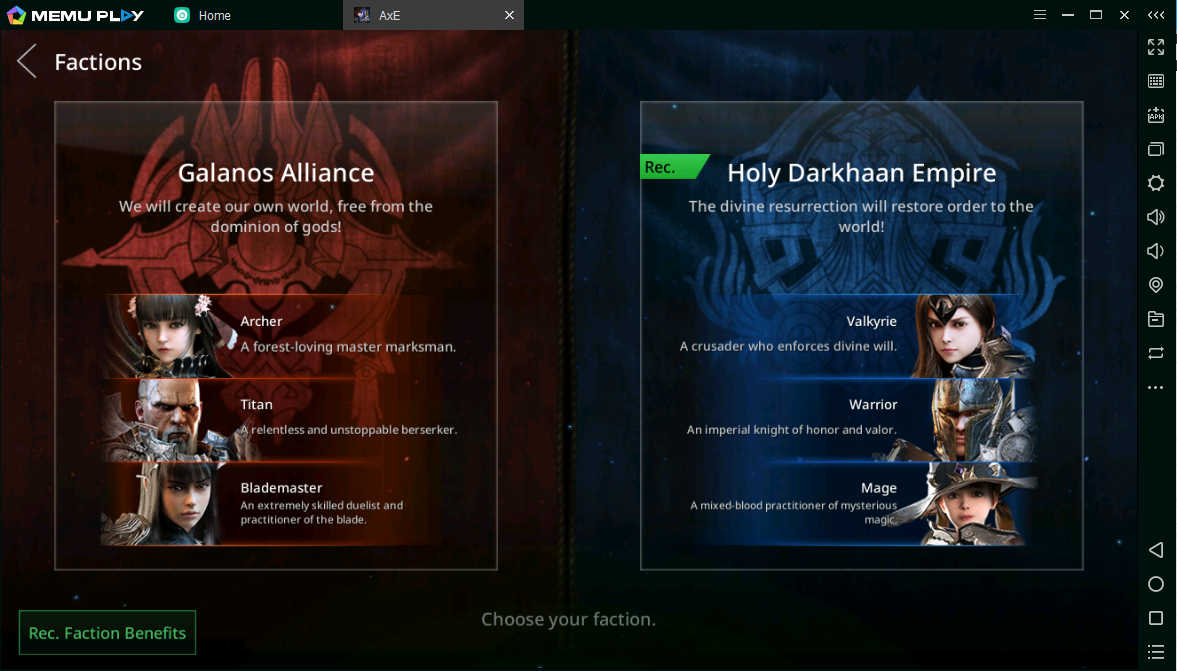 - Untuk bisa bermain AxE: Alliance Vs Empire di PC dengan performa maksimal, pakai saja MEmu Android Emulator. Jika kamu belum memiliki MEmu Android Emulator, maka bisa kamu download di sini.