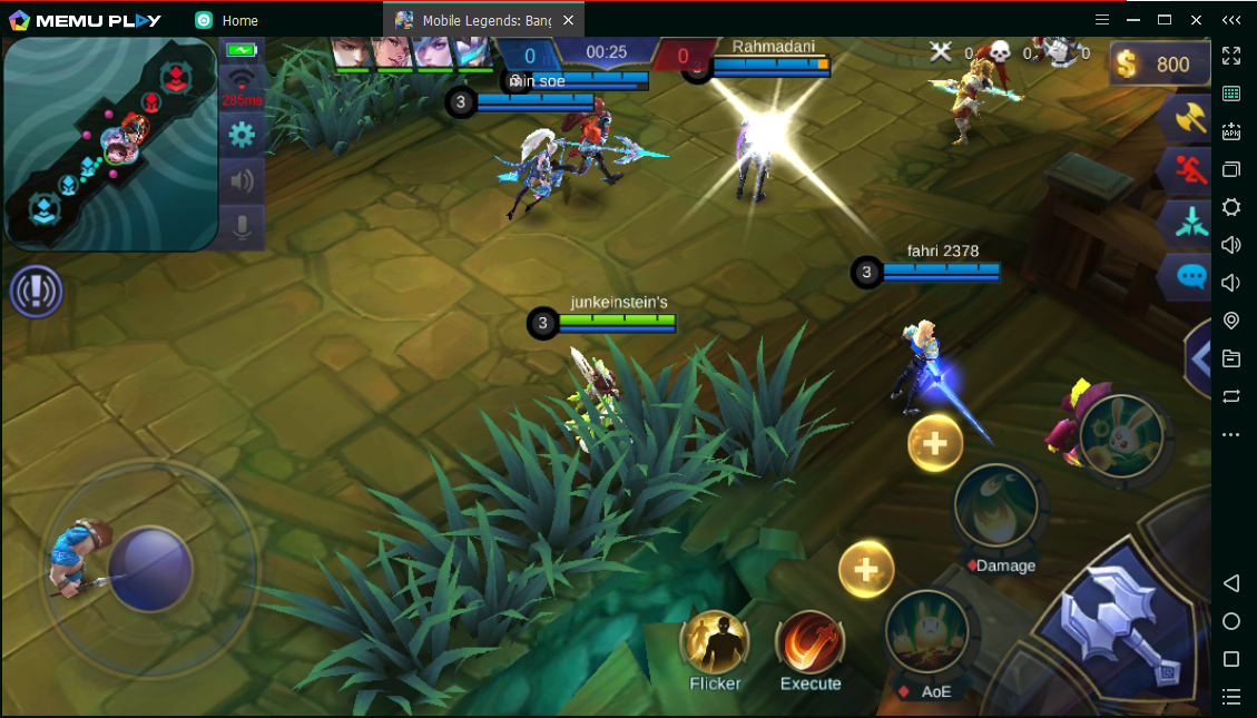 Kelebihan bermain game Mobile Legends di PC dengan Memu Android Emulator adalah, view pada setiap pertandingan jadi lebih luas, dibandingkan view pada smartphone. Kontrol permainan juga jadi lebih mudah dengan menggunakan fitur keymapping khusus dari MEmu, sehingga kamu bisa mengatur tombol pada keyboard sesuai dengan kenyamananmu. Selain itu, kamu bisa menggunakan 2 akun Mobile Legends secara bersamaan, atau bisa juga bermain game Mobile Legends, sambil membuka game lainnya.