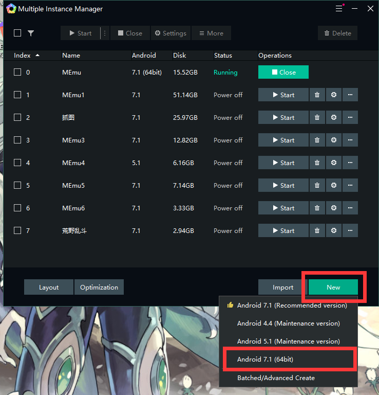 Langkah 2: Buat versi Android 7.1 (64bit) dengan Multi-MEmu
