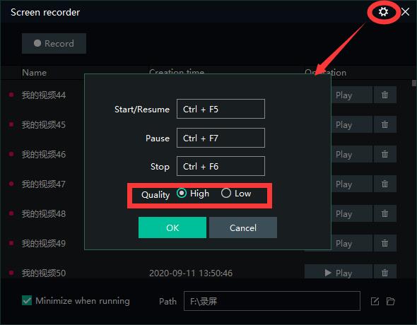 2.Before you start recording, you can select the recording quality.