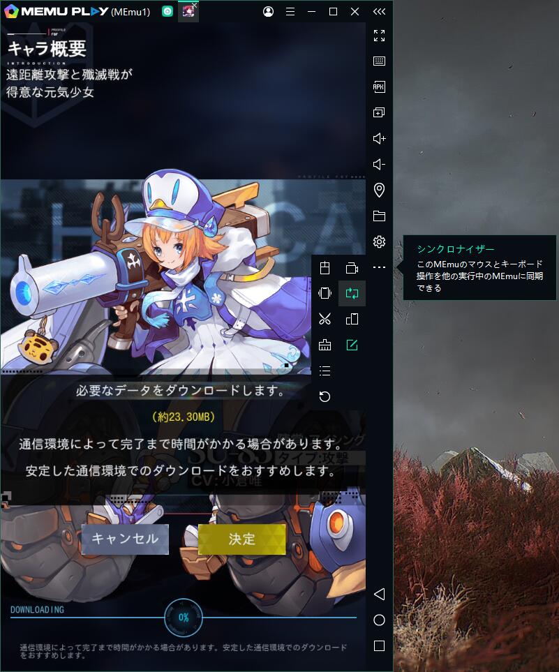 シンクロナイザーは当エミュレータのマウスとキーボード操作を他のエミュレータに同期します。つまり、一つのエミュレータ上の動作を複数のエミュに同期させることができます。