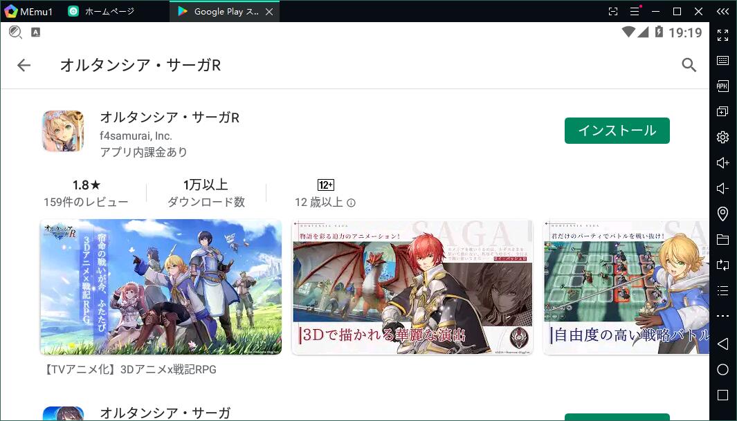2.エミュレータ内のGoogle Playから「オルタンシア・サーガR」を検索し、ダウンロードします。あるいは、Apkpureのようなサードパーティからダウンロードし、apkファイルをMEmuにドラッグしてもいいです。
