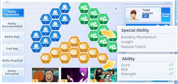 Different player roles are suited to different ability types. Matching abilities to a player’s role allows them to perform at their maximum potential. For example, Tetsuya Kuroko is a support-oriented playmaker—it’s recommended to prioritize abilities that enhance Ball Handling and Defense to further strengthen his court control and support capabilities.