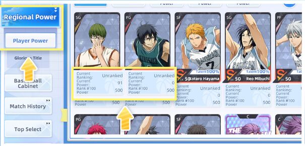 Tap your avatar → Regional Power → Player Power, then select the corresponding player to access the Ranked Powersystem. Using that player in Ranked matches and achieving victory will increase their Ranked Power.