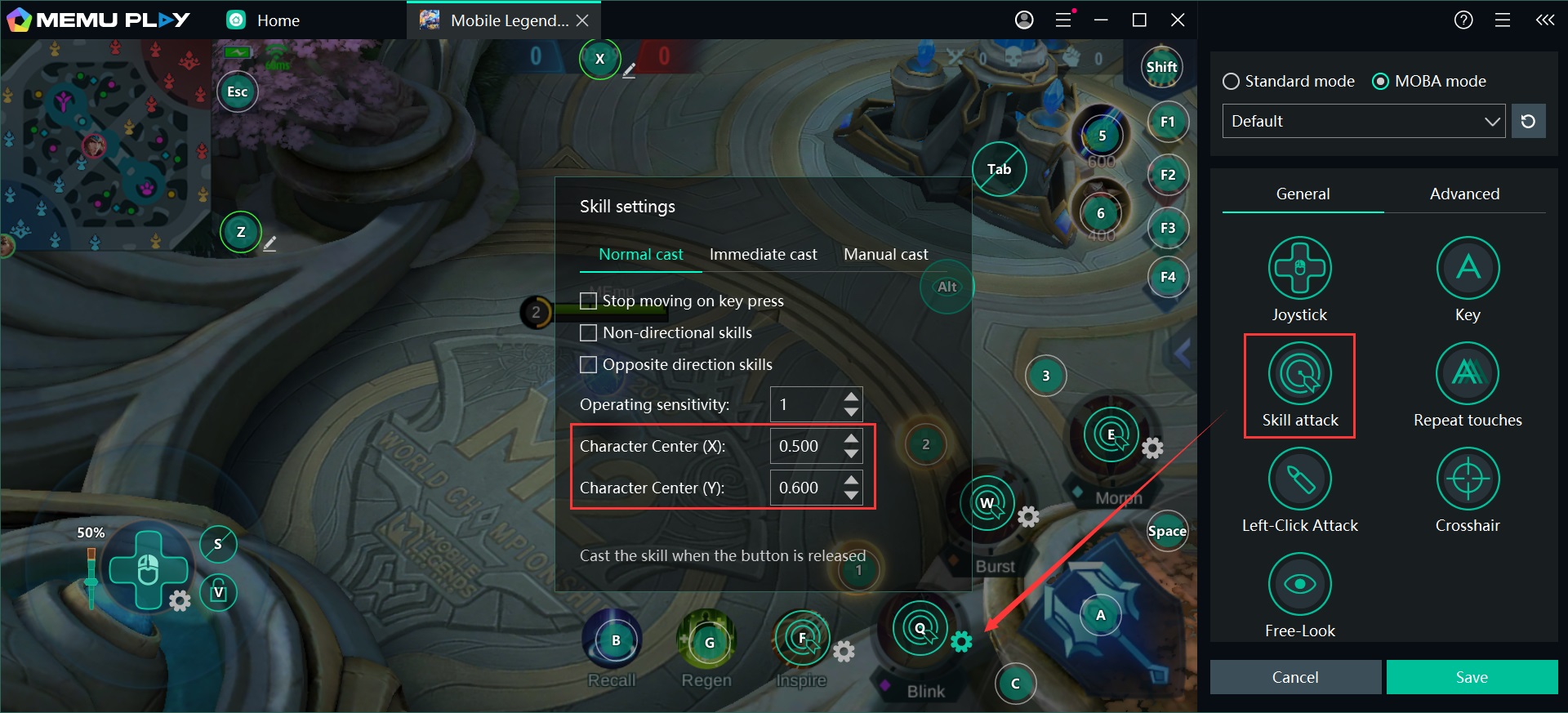 1. The cast keymapping supports the adjustment of the character center position and the skill casting sensitivity