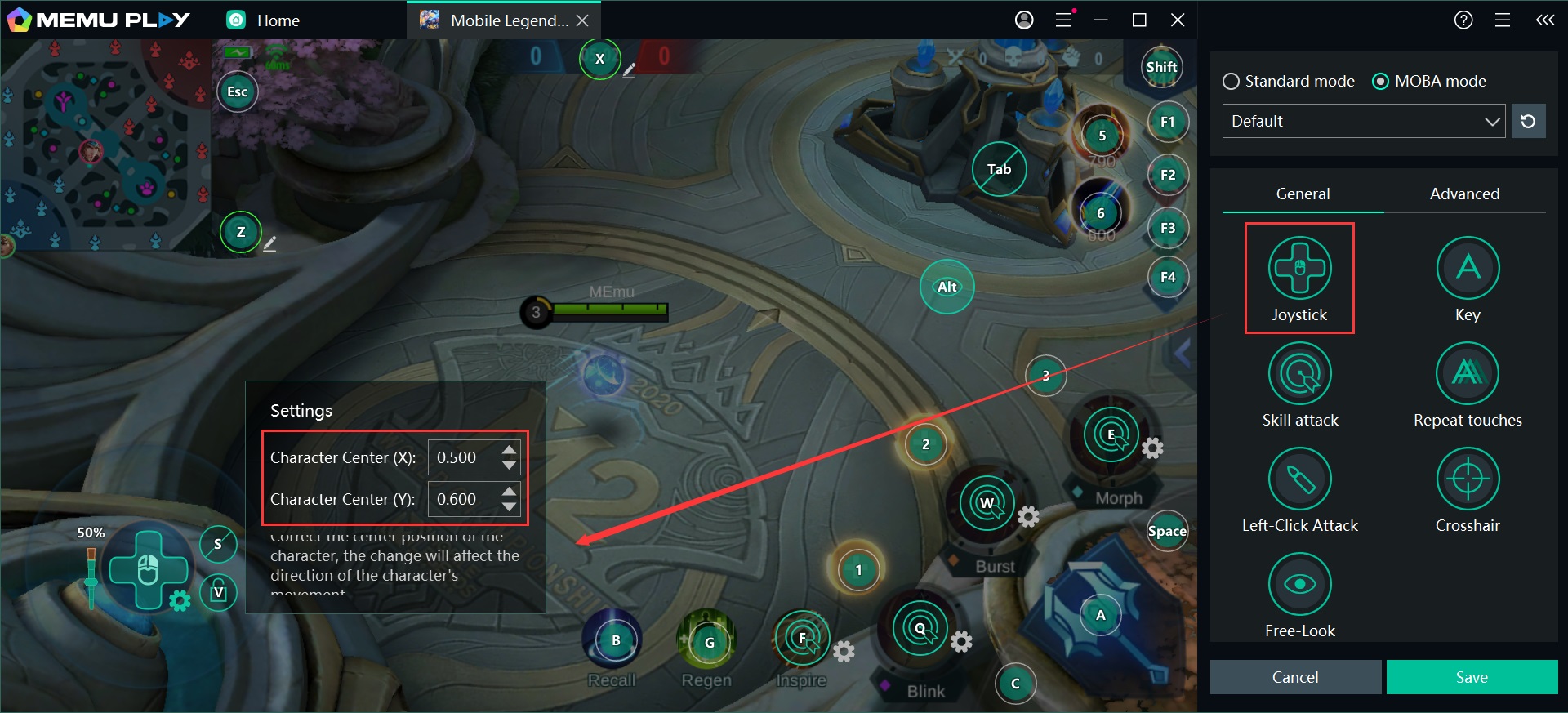 Application scenario: In some MOBA games, the center position of the character is different. This function can fine-tune the position of the character to make the right-click movement and skill casting more accurate.