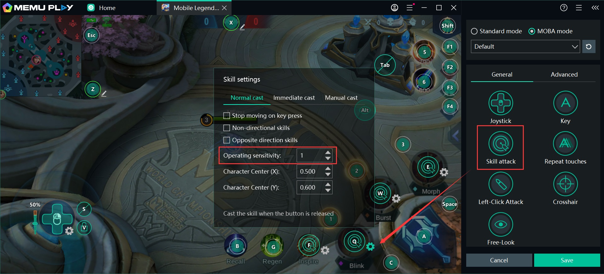 2. The cast keymapping supports the adjustment of the skill casting sensitivity