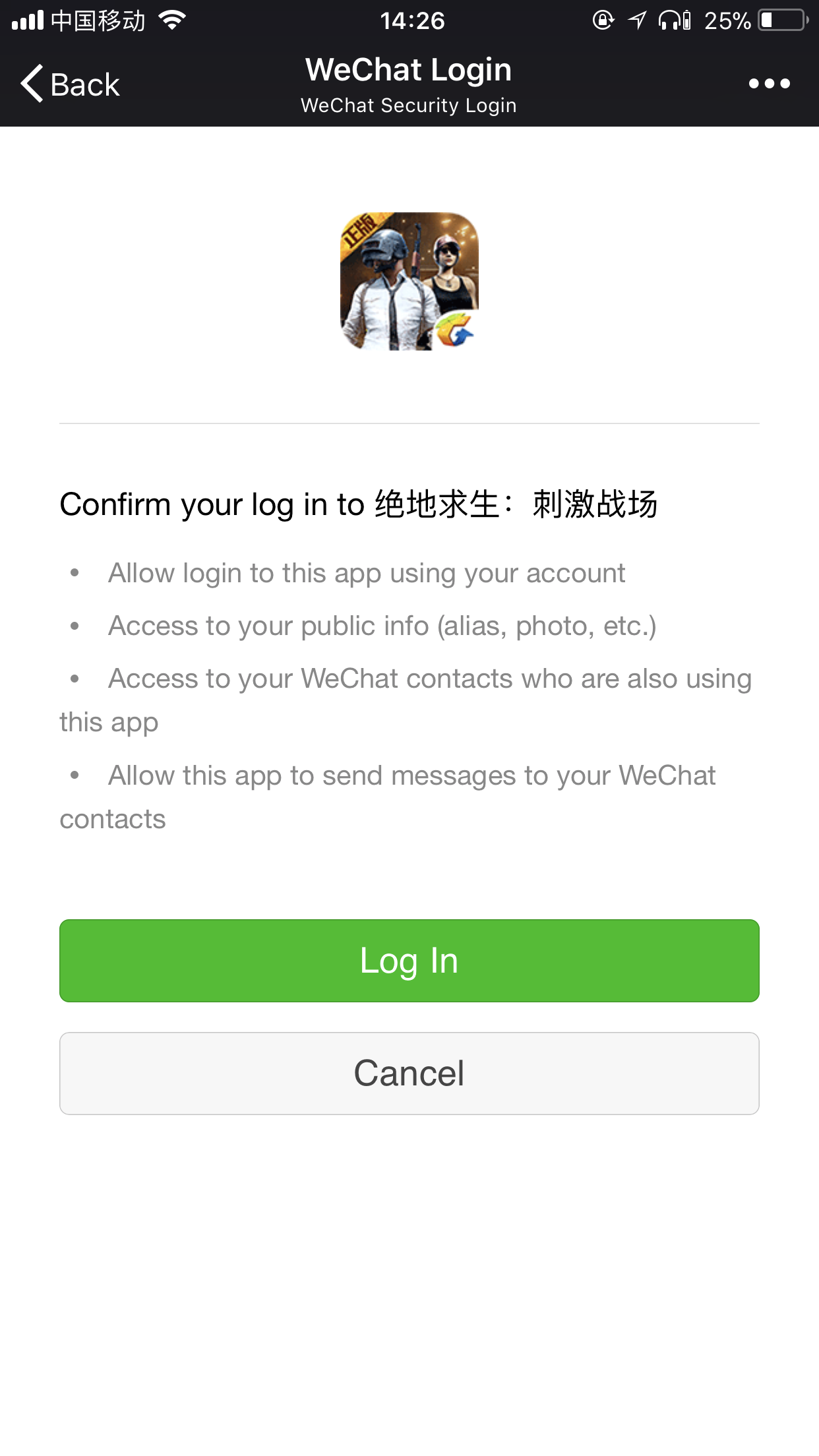 Step 3: Open the PUBG Mobile game you installed, after update and loading, click the green button with Red Circle to login with WeChat. The page will turns to WeChat, click confirm to login the game. Then skip Step 4 and follow Step 5.
