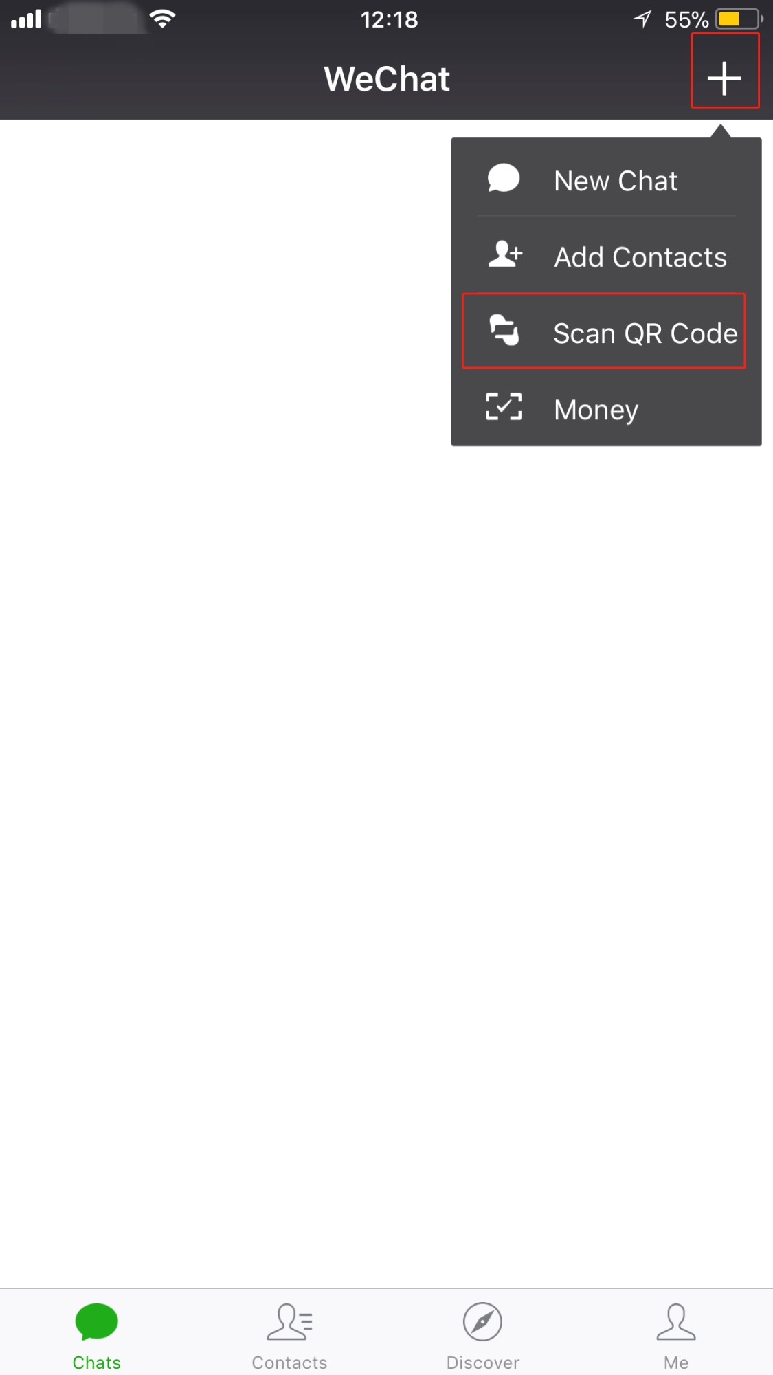 • Open WeChat on your Phone, click the “+” button and choose “Scan the QR Code”, then scan the QR Code shows above.