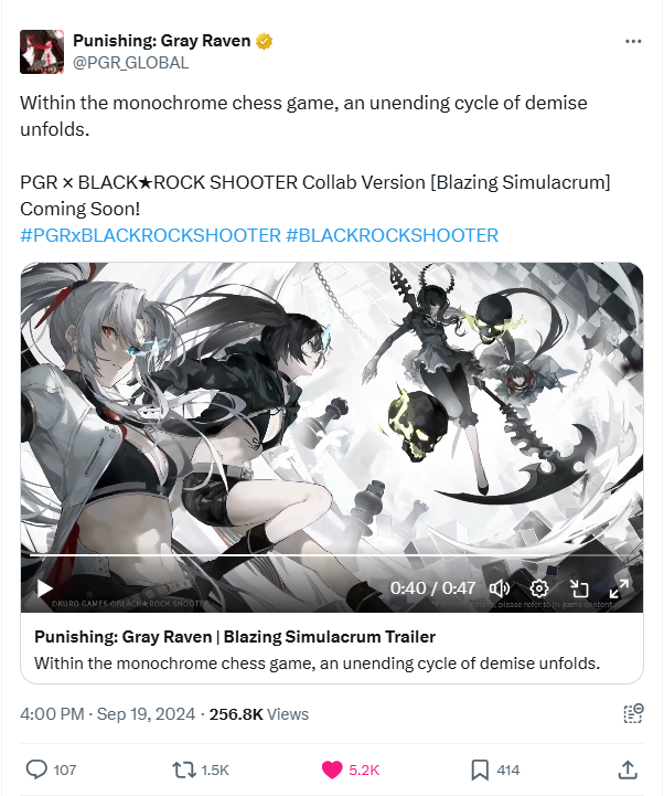 Kuro Games has recently unveiled one of the hottest gaming collaborations of the summer, involving two of the world’s best-loved classic characters. The crossover event is called Blazing Simulacrum, and It sees Kuro Games’s visually stunning 3D RPGPunishing: Gray Raven, teaming up with BLACK★ROCK SHOOTER.