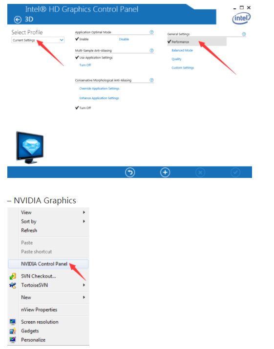 Прежде всего, убедитесь, что вы установили последнюю версию графического драйвера. Затем измените настройку, как показано ниже.