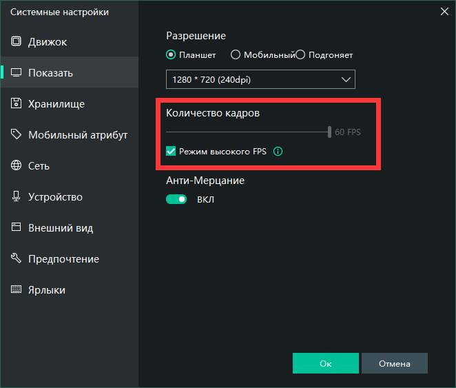 Шаг 1: Включите режим 120 кадров в секунду в настройках MEmu