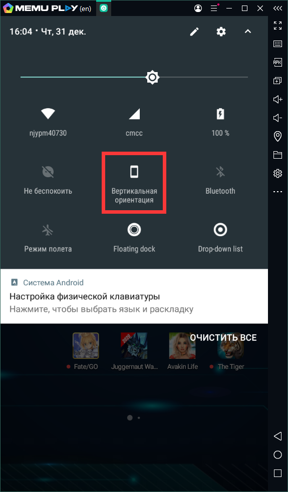 MEmu поставляется с фиксированной функцией переключения. Информационные настройки в правом верхнем углу симулятора выглядят следующим образом: