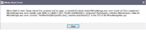Примечание: Если вы все еще не можете правильно запустить MEmu_1 или получить ниже Сообщение об ошибке,