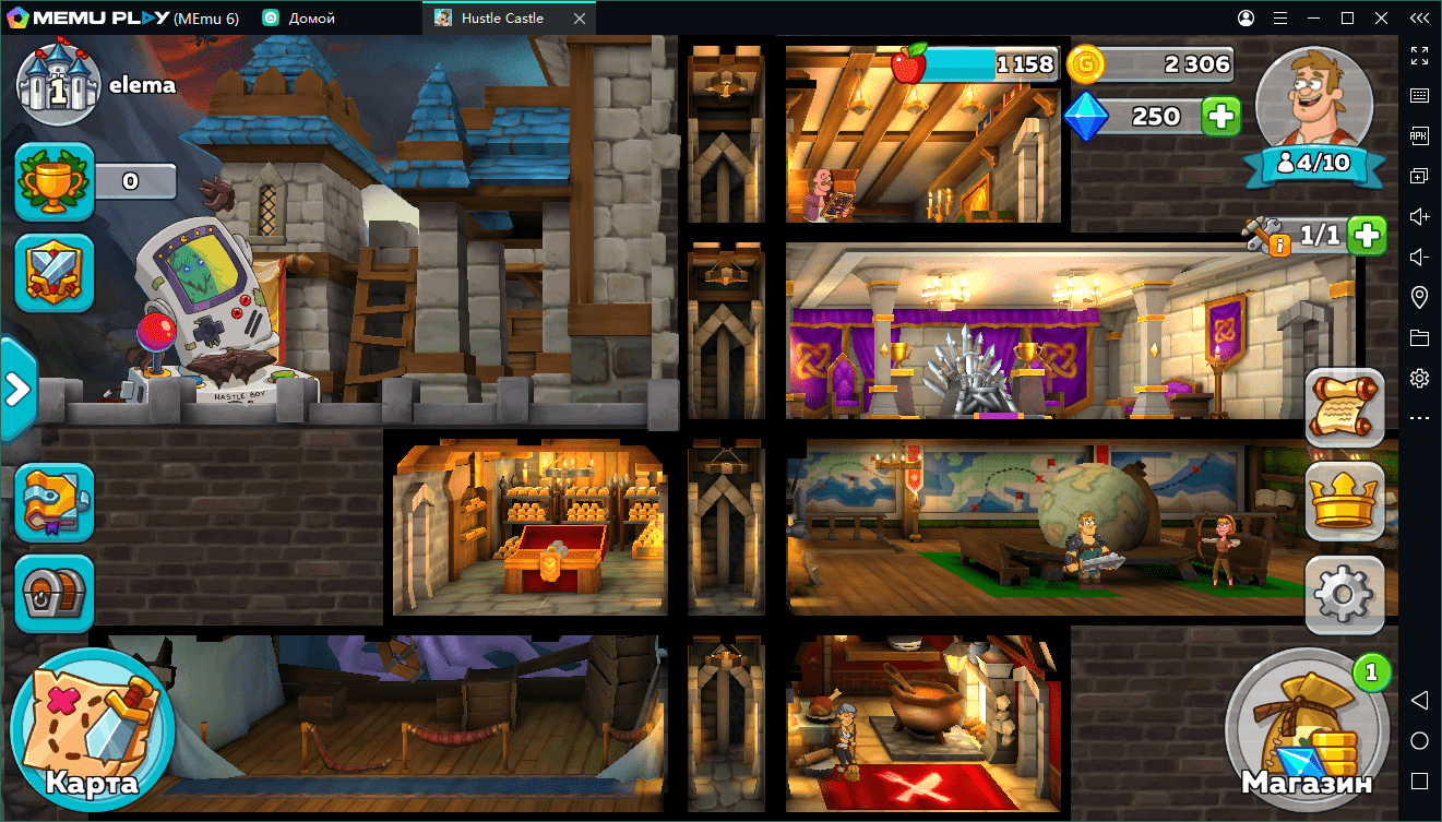Игра выполнена с применением нетребовательной графики в мультипликационном стиле. Геймплей пронизан сатирой, содержит множество отсылок к реальному миру, а потому хорошо воспринимается любыми пользователями. Скачайте Hustle Castle на ПК, чтобы ваше знакомство с проектом было приятнее. Вы сможете устранить любые лаги, а также увеличить производительность приложения.