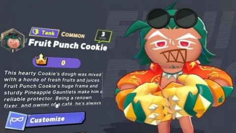 A mighty cookie who could easily pass for a berserker any day—that’s Fruit Punch Cookie for you. Without a doubt, he can tank, and he can be deceptively strong, especially in 1v1 situations. I’d advise you not to try taking him on. So without further ado, let’s dive into this Fruit Punch Cookie guide, where we’ll share his ideal Power Biscuits! About Fruit Punch Cookie This hearty Cookie’s dough was mixed with a horde of fresh fruits and juices. Fruit Punch Cookie’s huge frame and sturdy Pineapple Gauntlets make him a reliable protector. As a renowned fixer and owner of a café, he’s always ready to lend a hand to those in need.Role: TankRarity: Common Stats per level (1-10) LevelHPATK15,67031025,87232136,07533246,27734356,480354 Fruit Punch Cookie’s Skills Basic AttackPineapple Fist: Tap to strike twice in a cone, dealing damage. Hold to charge, then slam the ground to deal stronger damage in a cone. SpecialPower Drive: Charges in the designated direction, dealing damage within range.Heavy Hit: Charges in the designated direction, dealing damage to enemies within range and knocking them back.Ground Slam: Charges in the designated direction, dealing damage to enemies along the path. Upon reaching max range, slams the ground, stunning nearby enemies for 1.0 sec. UltimateLegendary Fighter’s Arrival!: Releases a powerful burst of energy, knocking back nearby enemies and dealing damage. Gains a shield when the skill is used. Enters a giant form for 10.0 sec, becoming immune to crowd control and enhancing Basic Attacks into ground slams in a cone.Legendary Fighter’s Clash!: Releases a powerful burst of energy, knocking back nearby enemies and dealing damage. Gains a shield based on the number of enemies hit. Enters a giant form for 10.0 sec, becoming immune to crowd control, increasing MOV SPD, and enhancing Basic Attacks into ground slams in a cone.Legendary Fighter’s Rampage!: Releases a powerful burst of energy, knocking back nearby enemies and dealing damage. Enters a giant form for 10.0 sec, becoming immune to crowd control and increasing ATK. Basic Attacks are enhanced into ground slams in a cone. Best build for Fruit Punch Cookie CharacterPower BiscuitsBasicSpecialUltimatePineapple FistGround SlamLegendary Fighter's Arrival!Passive Lv. 8Passive Lv. 10HP BoostBlessing of the Battlefield Fruit Punch Cookie – Playstyle & Strategies Fruit Punch Cookie is a frontliner who can soak up a lot of damage—his Ultimate provides significant immunity, which you can also use to disengage from battles. Most importantly, you need to understand just how much punishment he can take. Try charging his Basic Attack for surprise attacks (use it from bushes if necessary), and always position yourself as the first line of defense for your team. Your goal isn’t necessarily to secure kills, but rather to deal as much damage as possible while absorbing as much incoming damage as you can.