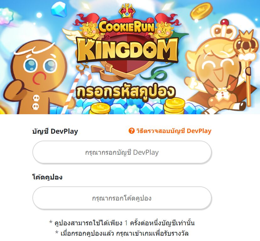 - ป้อนรหัสผู้เล่นของคุณและรหัสเกม Cookie Run: Kingdom ที่คุณต้องการใช้แลกรับ