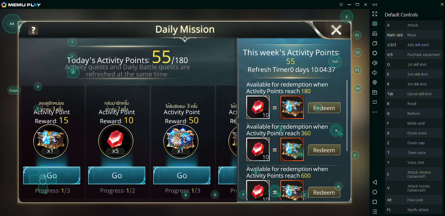 2 แค่นี้คุณก็สามารถเล่น Garena RoV: Mobile MOBA บนคอมของคุณได้แล้ว คุณสามารถเปลี่ยนคีย์ได้ถ้าไม่ถนัดกับปุ่มที่โปรแกรมได้เซ็ตมาให้