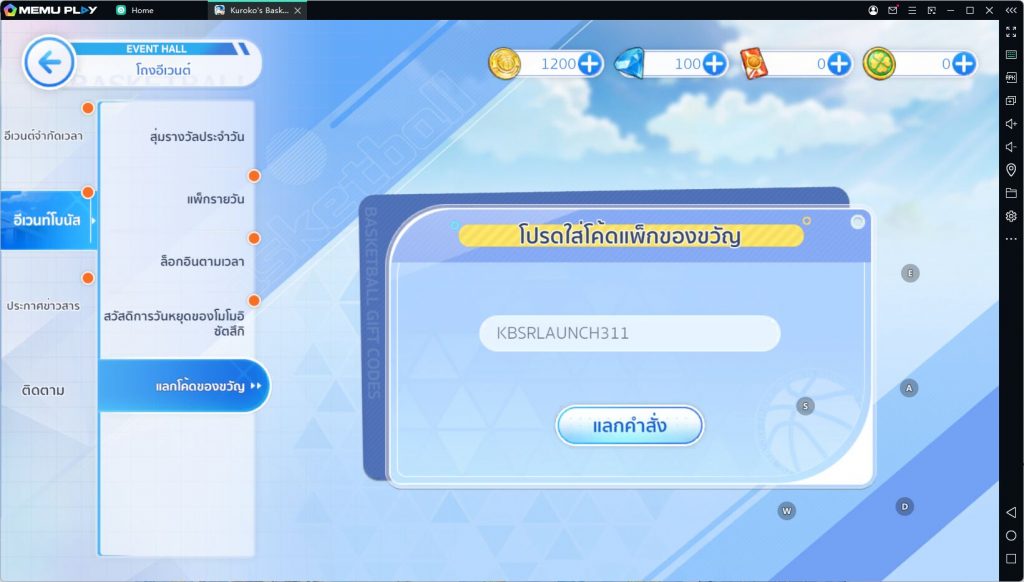 วิธีใส่โค้ดในเกม Kuroko’s Basketball Street Rivals