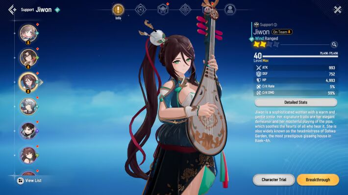 • Jiwon (5★ มีให้เลือกจาก แบนเนอร์มือใหม่) เป็นตัวเลือกซัพพอร์ตระดับท็อปสำหรับ Esde
