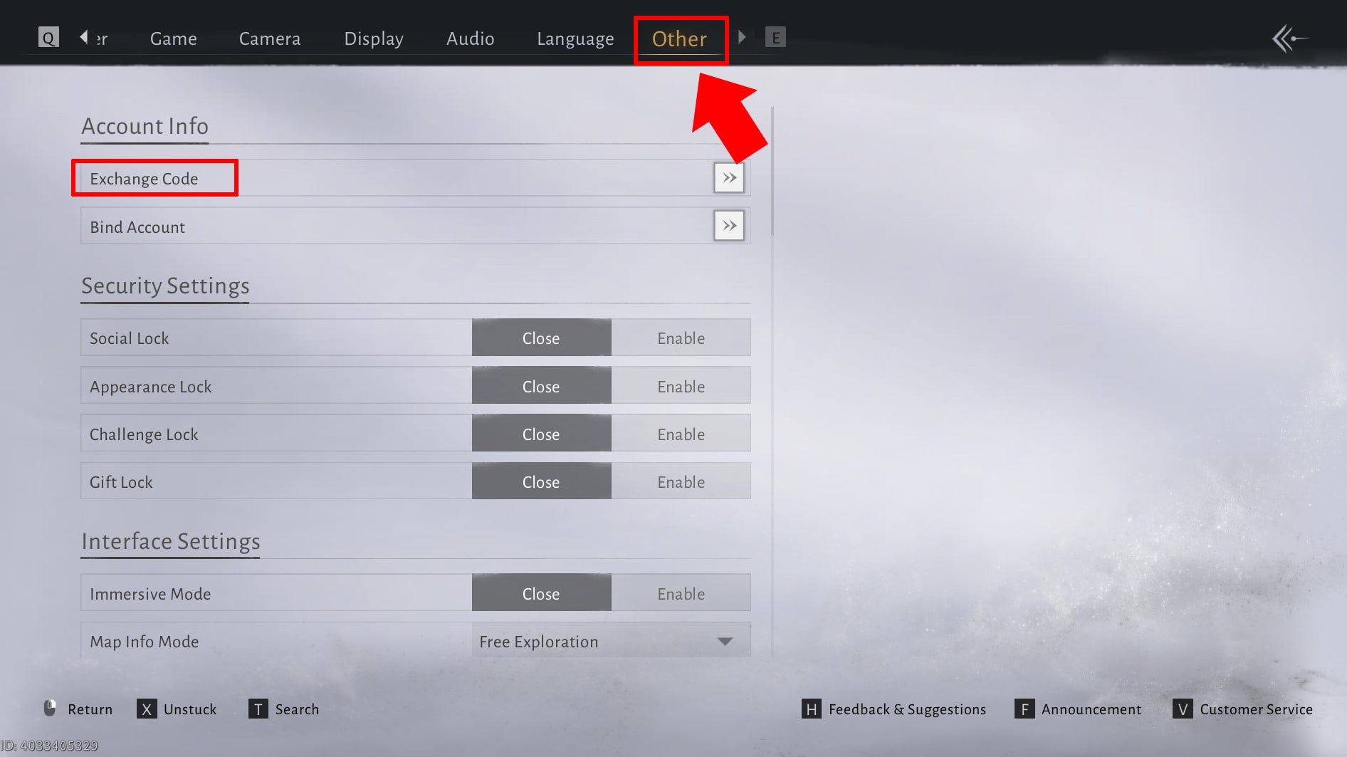 2.ไปยังเมนูด้านบน Other และไปที่ Exchange Code