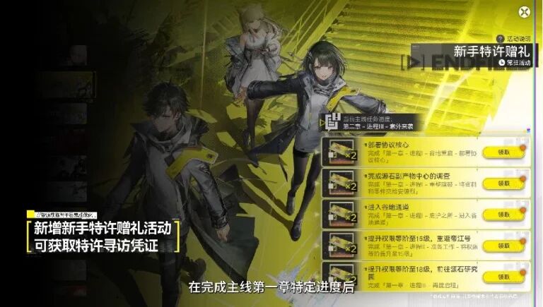 完成主線第一章指定進度,解鎖新手特許十連,老玩家可直接領