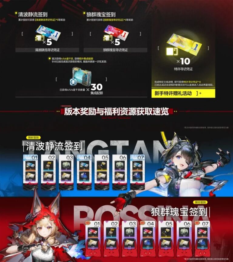 每個卡池上線對應簽到活動,累計簽到各拿5抽,抽卡資源管夠