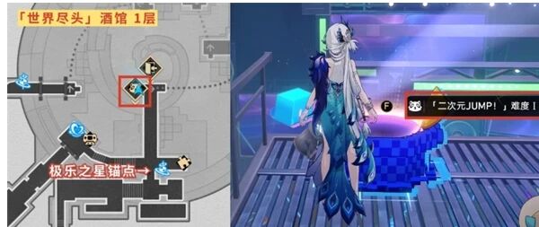 1. 返回起點並彈奏:回到「世界盡頭」酒館的「極樂之星」錨點,在「二次元JUMP」處彈奏第二張樂譜。