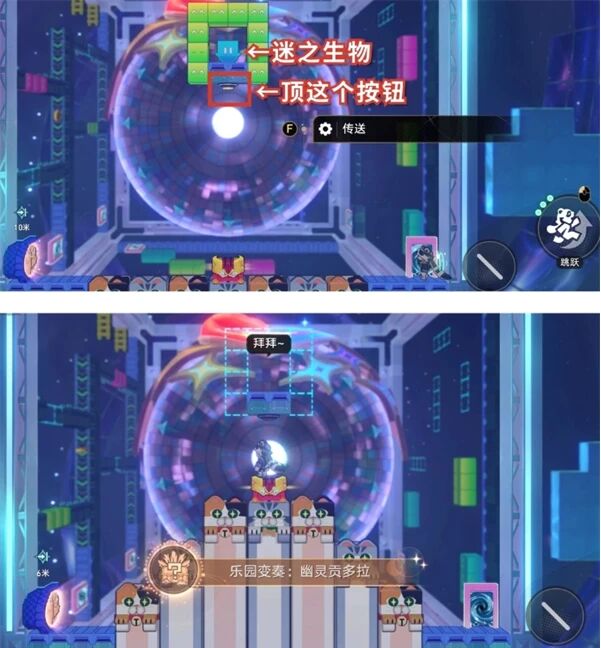 完成成就:通過傳送門後,跟隨節奏(貓條節奏)移動並頂到對應的按鈕,即可達成成就。