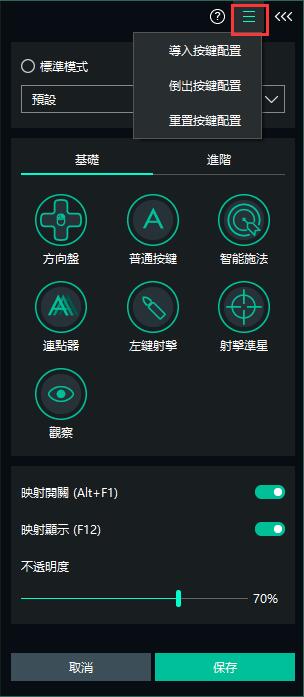 此外,可以在選單中選擇導入或導出按鍵映射的配置檔案。