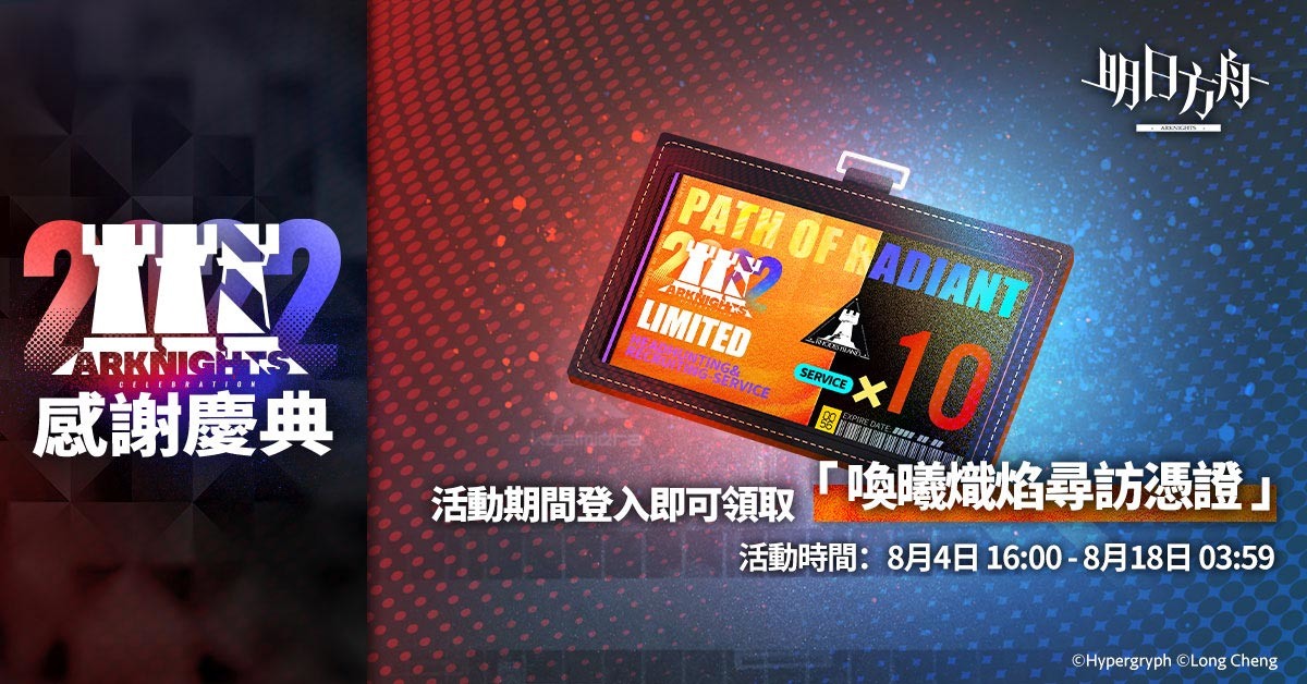 為了感謝玩家們的支持與喜愛,本次官方特別推出一系列感謝慶典活動,除了有全新幹員、傢俱、時裝等內容以外,慶典期間登入還可獲得各種豐富好禮。