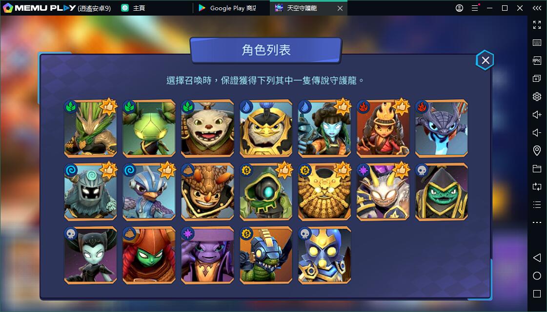 2.從模擬器內置的GOOGLE PLAY商店中搜尋並下載《天空守護龍 英雄戰場》